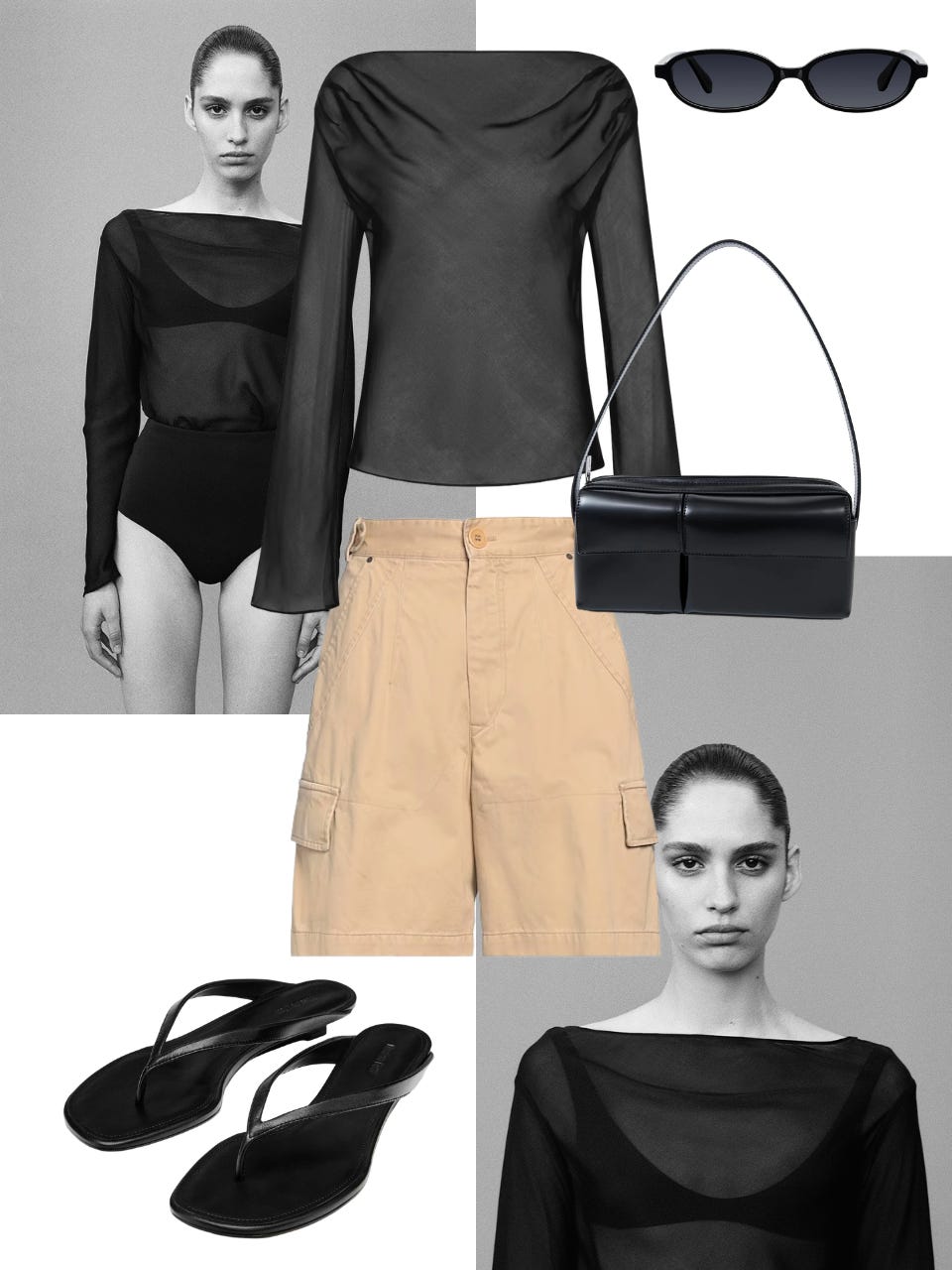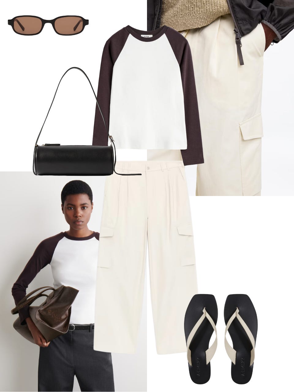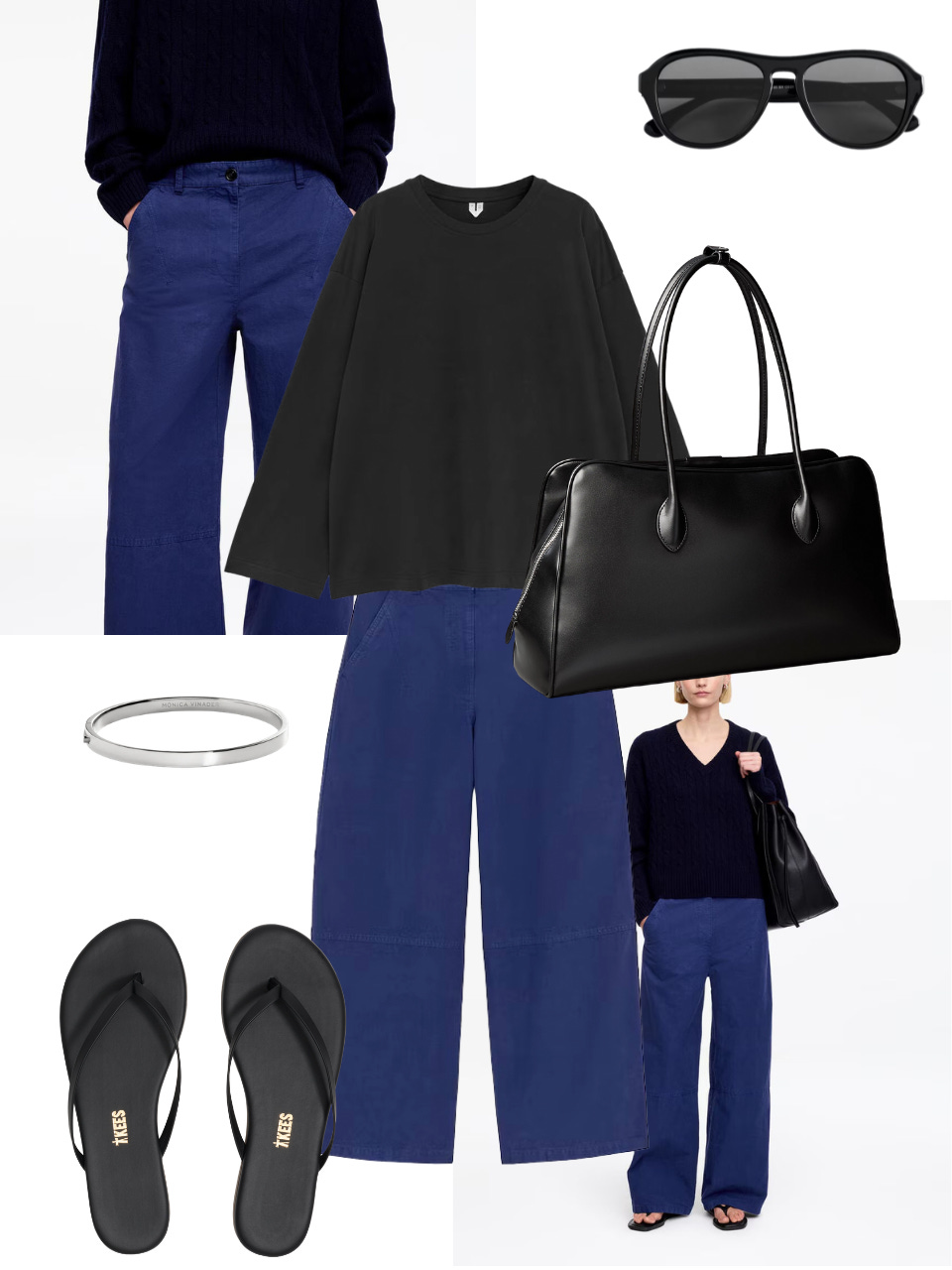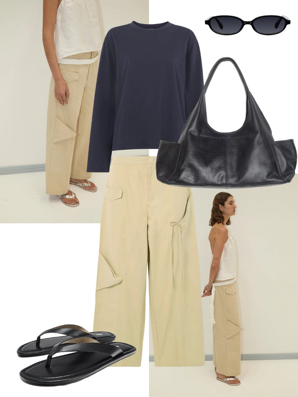 Yes, we are searching for fun in fashion, but we are also longing for realism, and when those two things combine, that’s when it gets really good. The binaries that can be created by pairing maximalist or formal pieces with workwear-inspired ones are really fun. A couple of outfit examples below demonstrate how I would dress this trend up, pairing cargos and technical jackets with sheer blouses and heels to create a real sense of tension within the overall outfit. Even the tension created by pairing something utility-inspired with a flip flop is a great example of something inherently practical vs something less so (even though I would deem flip flops one of the most practical and essential shoes anyone could own, I know this is not the general consensus). And while utility dressing may be rooted in neutrals, I found a really great pair of cobalt blue cargos in this edit, which I think in and of themselves prove that this fun era of fashion is already mixing with this more ‘sensible’ genre.